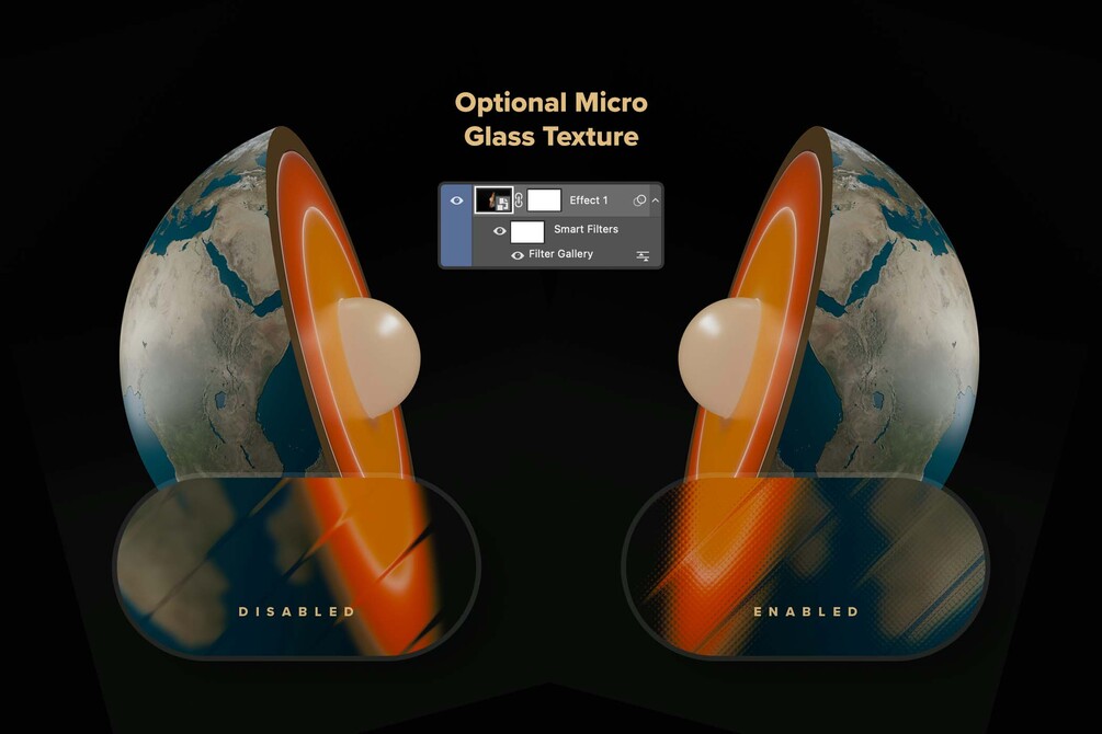 Each effect is paired with an optional microlens texture, doubling your variations to explore. You can experiment with subtle ripples or dramatic distortions to find the perfect look for your artwork.
