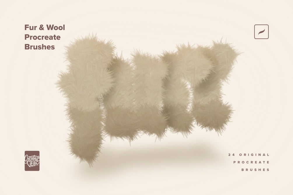 A pack of 24 Procreate fur and wool brushes. Perfect for creating realistic textures, adorable characters, stylized illustrations, and unique typography, these brushes add depth and dimension to every project.