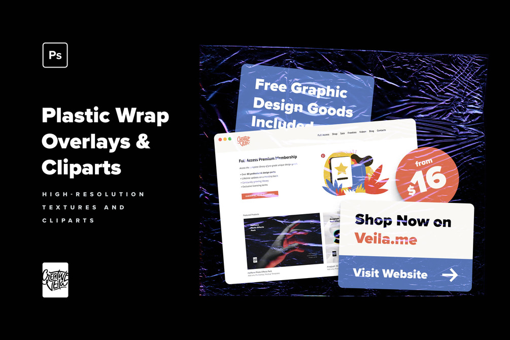 At Creative Veila studio, we avoid plastic as hard as possible, though supplies come, and we want to put all that wrap in use. Besides, we do love the aesthetics. That’s why we bring the second pack of plastic textures and overlays. With a neon cyberpunk twist this time! Check the details.